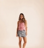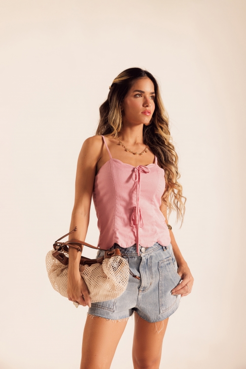 Short Denim Pockets 100% algodão com bolsos sobrepostos, passantes na frente e costas, modelagem asa delta e barra a fio.
