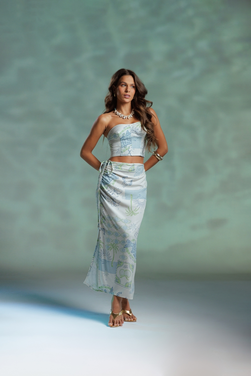 Corset Praieira, tomara que caia estruturado, elástico embutido e zíper nas costas. Modelagem ajustada ao corpo. Confeccionado em tecido 55% algodão e 45% viscose.