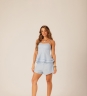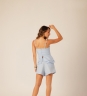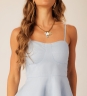 Blusa peplum Refúgio com alças finas, busto estruturado e babado duplo que traz movimento ao visual. Tecido 70% algodão e 30% linho, com toque leve e aparência natural.