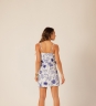 Vestido Curto em estampa exclusiva shell, com alças finas e amarração frontal que ajusta e valoriza a silhueta. Confeccionado em tecido 70% viscose e 30% linho, leve e confortável para dias quentes.