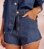 Short Jeans Glow em lavagem média com strass aplicados na frente.Os bolsos traseiros em formato de coração e a barra levemente desfiada completam a peça em tecido 100% algodão, com caimento firme e confortável.