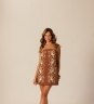 Vestido Curto Florescer em tecido 93% viscose e 7% poliéster, com caimento leve e toque suave. O modelo sem alças valoriza o colo e traz um visual clean, enquanto o silk frontal com flores cria destaque e contraste sobre a base.