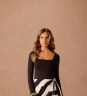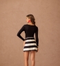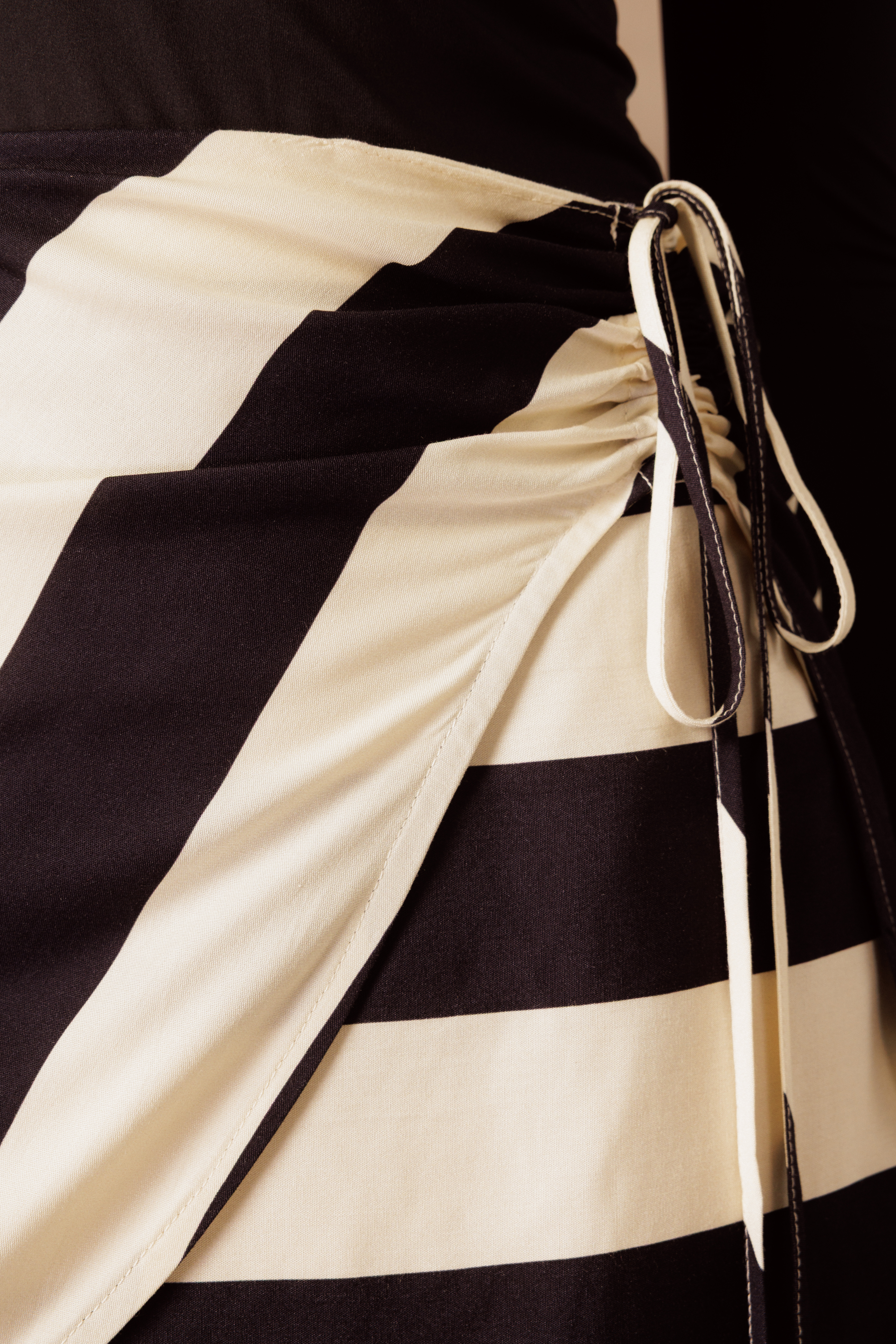 Saia Amarração Stripes em 100% viscose com estampa em listras, trazendo aba sobreposta na frente. O detalhe do canal de rolotê lateral com amarração ajusta a peça e forma um leve franzido, deixando o visual mais interessante.