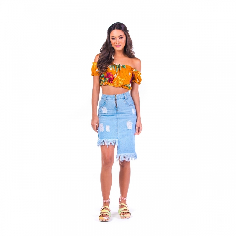Cropped em tecido viscose de toque leve e macio, estampa floral e modelagem ombro a ombro!